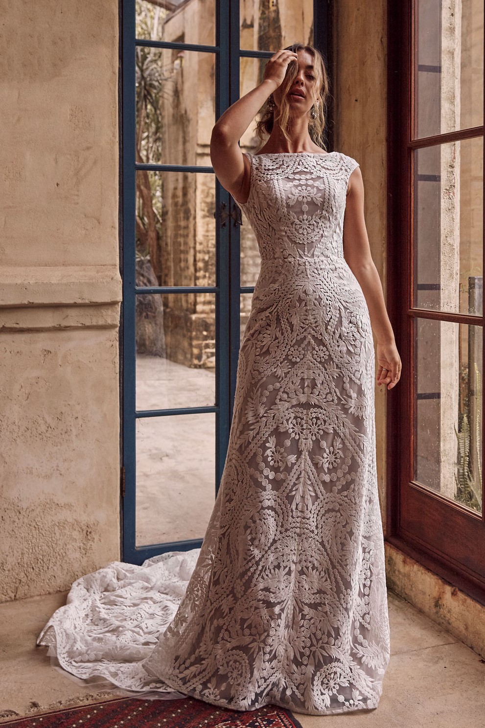 Végül – de nem utolsóként –, egy másik lélegzetelállító darabot emelünk ki. Keleti mintás csipkék simogatása, újszerű vállmegoldással: ez a kecses Topaz . Elbűvölő, tiszta és nemes – akárcsak az, aki viseli.