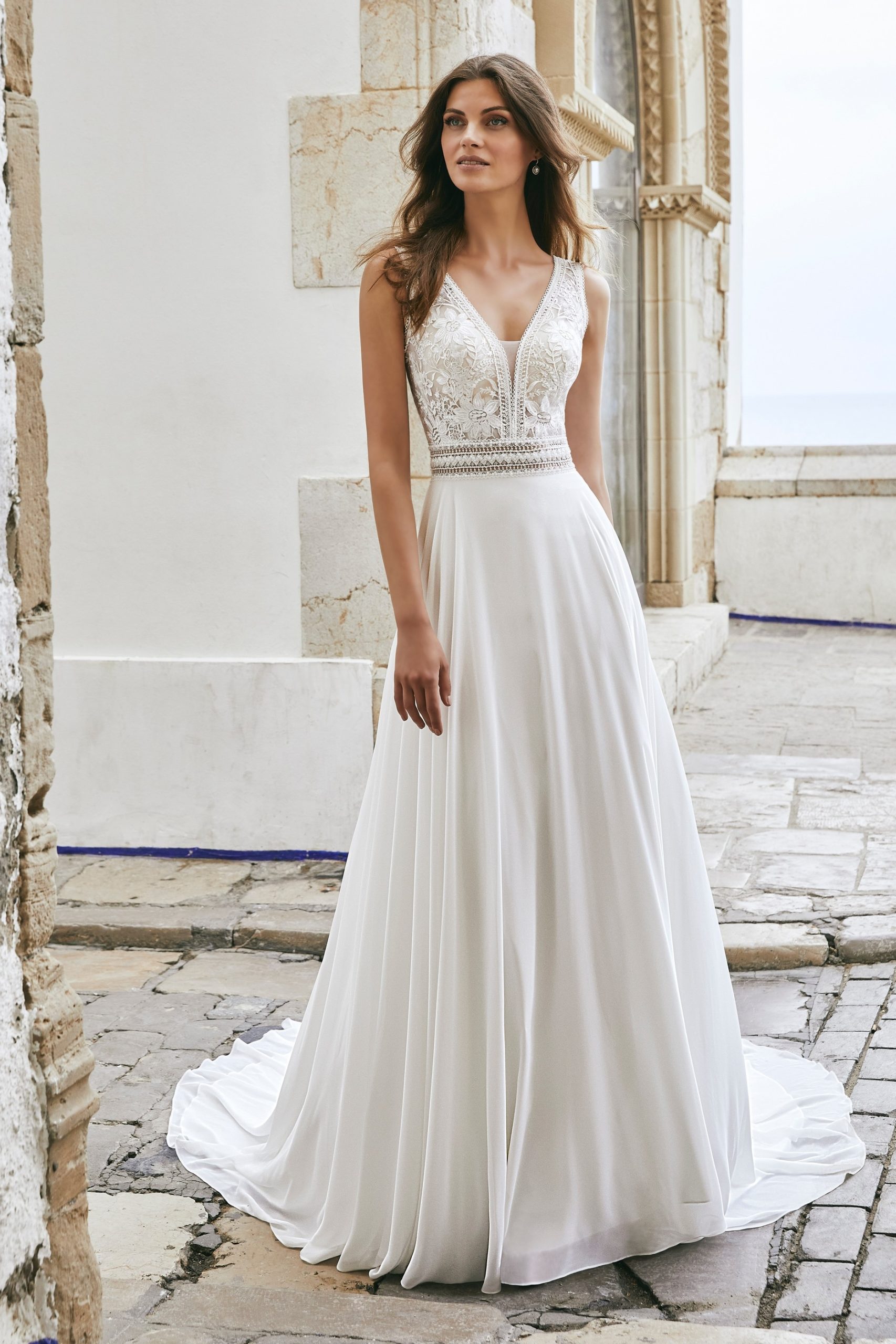 Végtelen formagazdagság jellemzi az új kollekciót. Sokféle nemes szabásvonal, érzéki sellő, letisztult eleganciát kifejező A-vonalúak, kis-nagy- és köruszályos fantáziák, csipkés pántok, derékon oszlop-szerűen csavarodó, rétegzett selyem költemények… A sziluett tökéletességét hirdetik ezek a megunhatatlan és divat fölött álló álomkreációk most is.