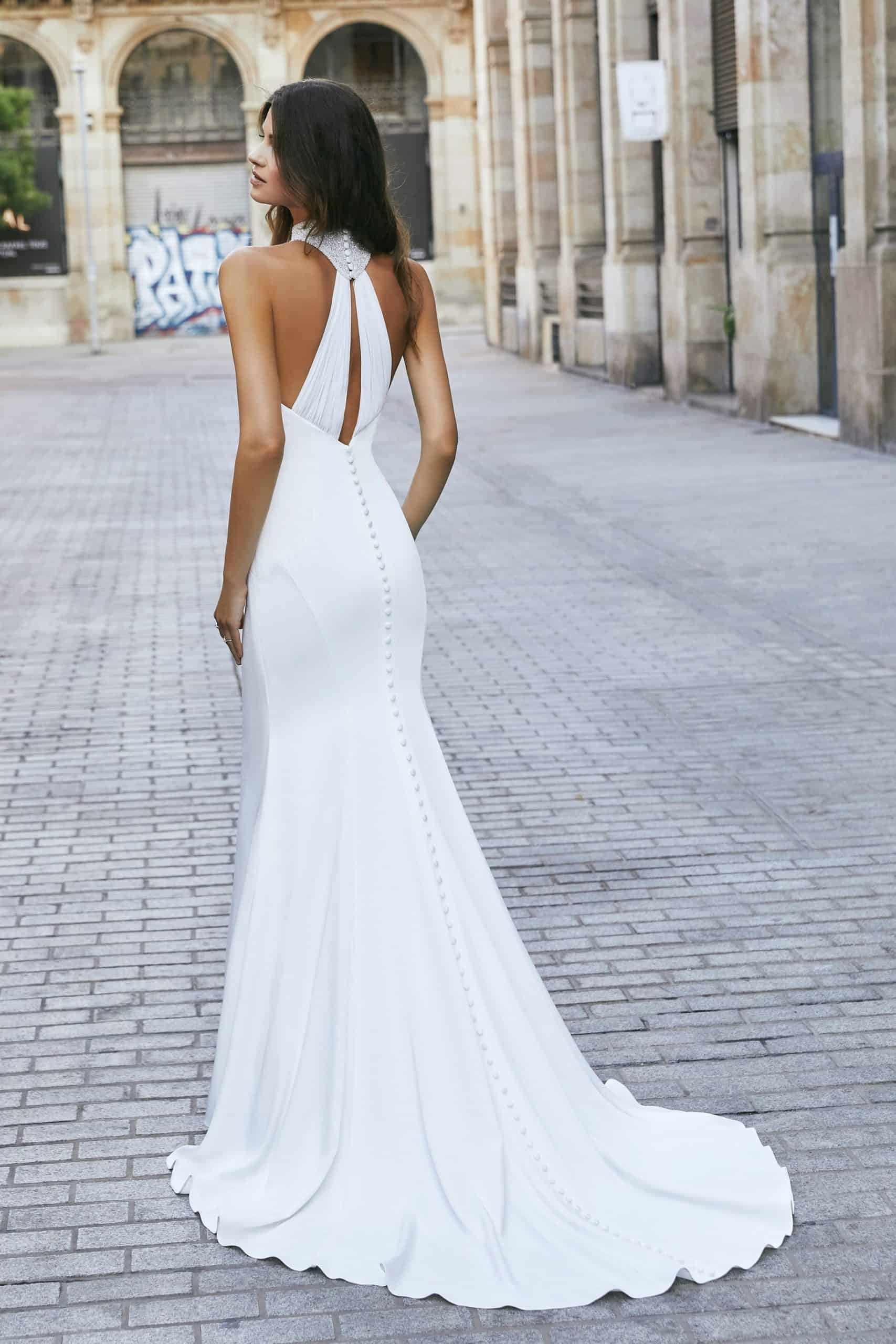 A csillogó, nemes szatén szép fényével megbabonáz, ahogy hozzáérsz, jólesik. Aztán ha felveszed, csak úgy siklik a testeden, nincsenek rajta pántok, a dekoltázs is eszköztelen, aztán a derékon egy hirtelen csavar: mondjuk mondén-modern óriásmasni, hogy kiszámíthatatlan szépséggé válj. Ha feleségül vesznek is, és ilyen téren kiszámítható lettél, mindig tartogatsz valamit, ami meglepetés, amiről később beszélni kell, mert ámulatba ejtő és felejthetetlen. Na, ezt fejezi ki a márka minimalista vonulata.