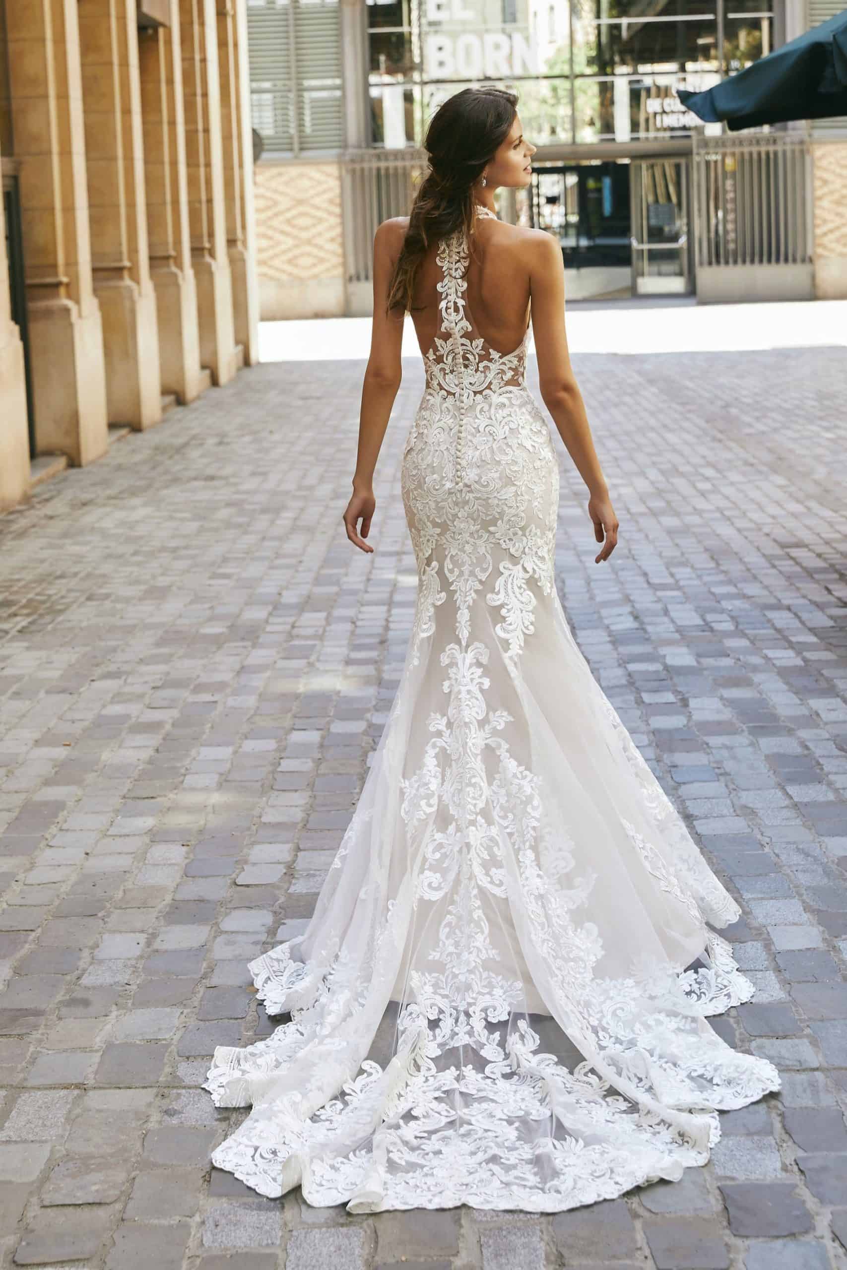 A hát közepét, a gerince vonalát varázslatos csipkefonat díszíti, összhangban az áttetsző uszállyal, melynek rajzolatát a hát közepéhez tervezték. Tökéletesen nyújt, elkápráztat és egy biztos: fokozza a vőlegény büszkeségét és szerelmét.