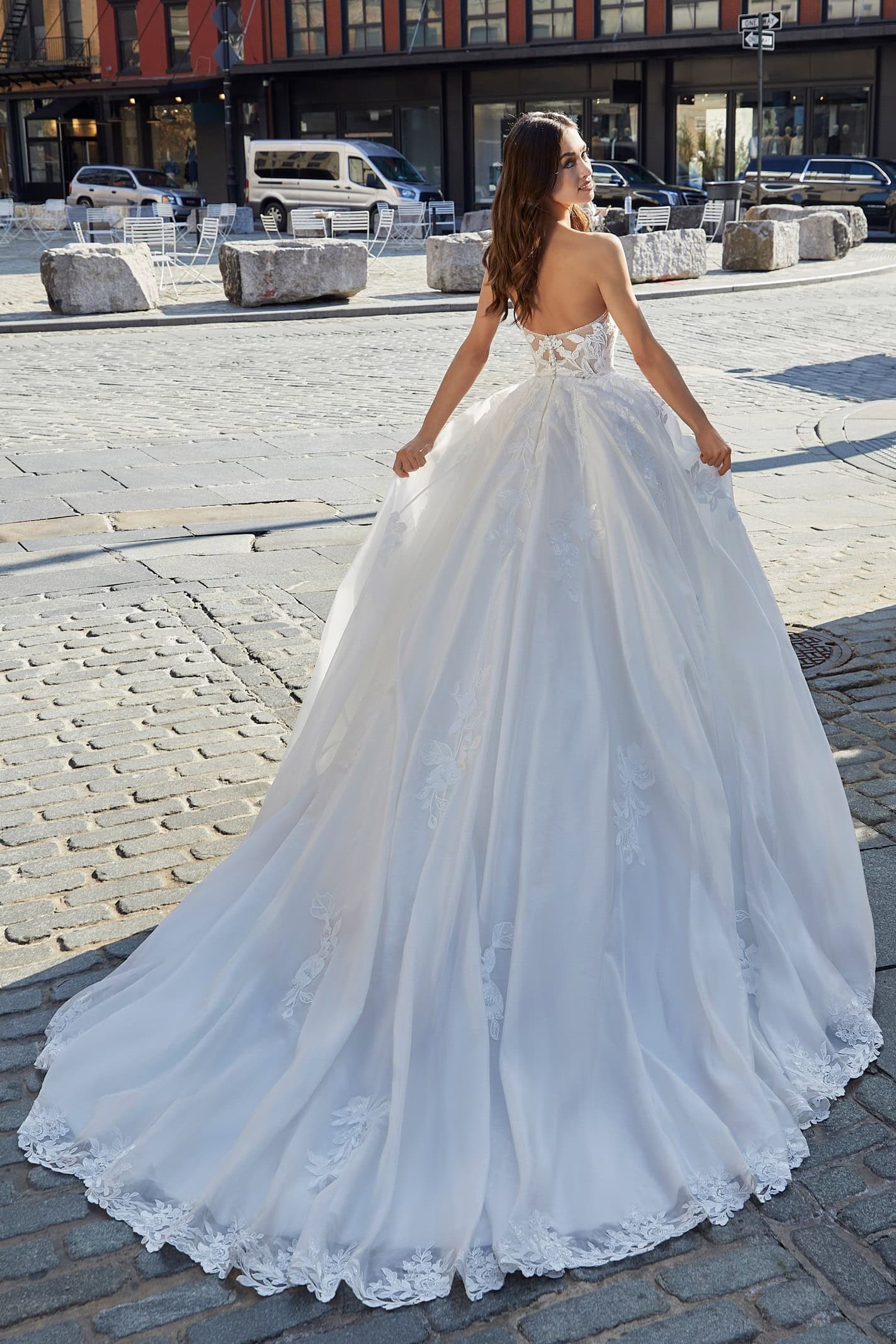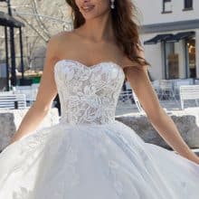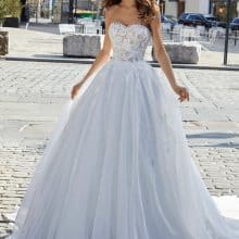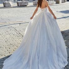 Ez az A vonal menyasszonyi ruha csipkével organza szoknyával azoknak a menyasszonyoknak szól, akik a részletekben találják meg a szépséget. Akik nem feltétlenül a legfeltűnőbb ruhát keresik – hanem azt, amelyik igazán illik hozzájuk.
