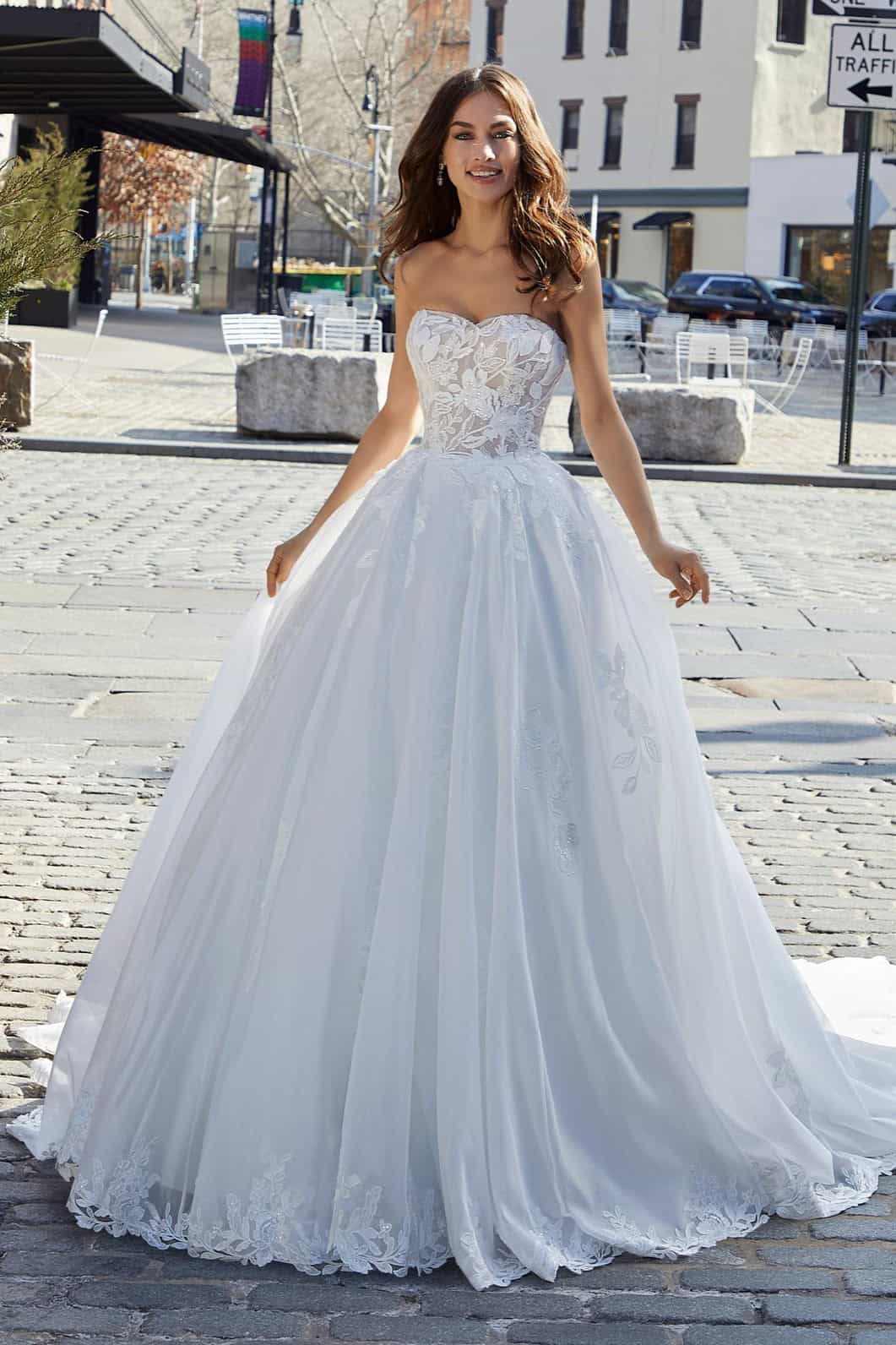 A vonal menyasszonyi ruha csipkével organza szoknyával – Morilee Shauna
