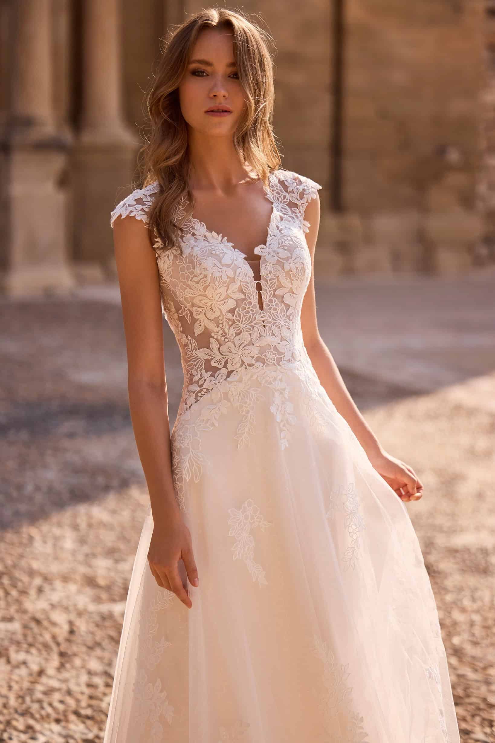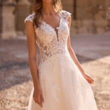 Az A-vonalú csipkés menyasszonyi ruha ideális választás azoknak a menyasszonyoknak, akik a klasszikus eleganciát finom, modern részletekkel szeretnék ötvözni. A Veni Infantino kollekció Hydrangea modellje romantikus megjelenésével és átgondolt szabásával időtálló darab a nagy napra.