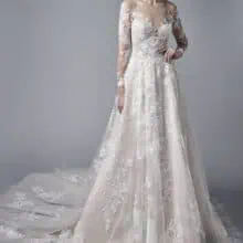 A Blue by Enzoani Lysandra egy igazán varázslatos A-vonalú hosszú ujjú esküvői ruha, amely a klasszikus és modern elemek tökéletes ötvözete. Ez a modern hercegnői ruha azoknak a menyasszonyoknak készült, akik egy időtlen, romantikus stílust szeretnének viselni, de mégis különleges, egyedi részletekre vágynak.