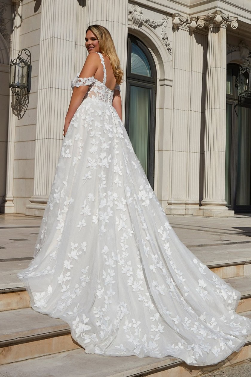 A Morilee Theresa egy időtlen A-vonalú molett menyasszonyi ruha, amely tökéletes választás templomi esküvőkhöz, elegáns rendezvényhelyszínekhez vagy szabadtéri ceremóniákhoz is. A modell a modern menyasszonyi divat és a klasszikus romantika harmonikus találkozása.