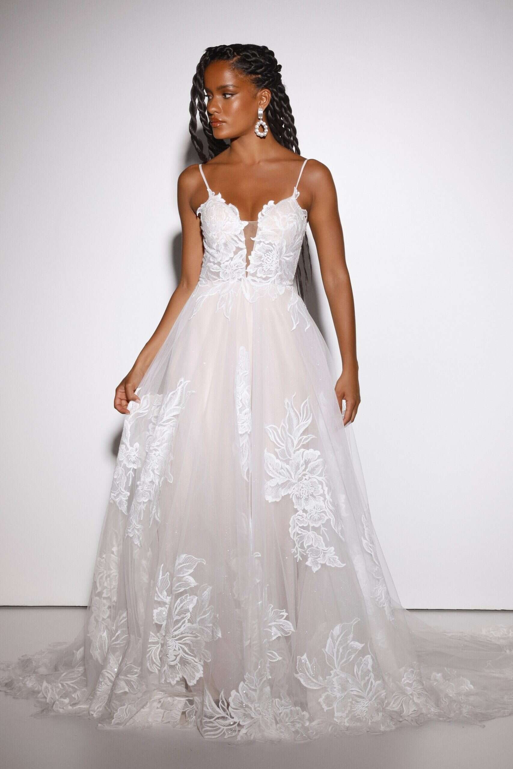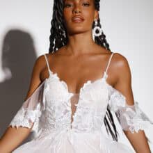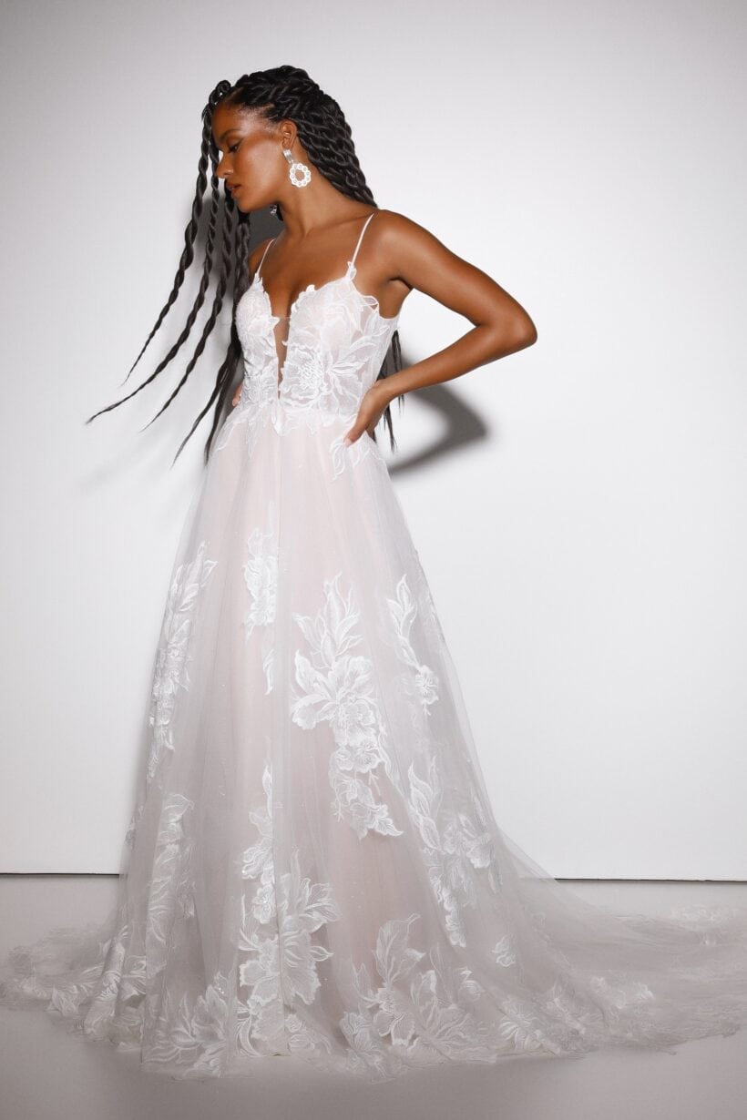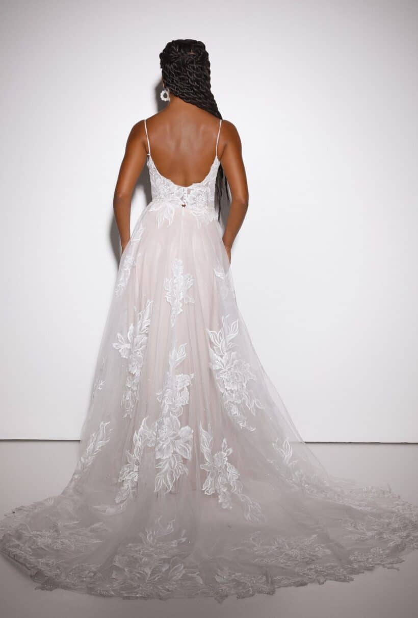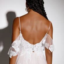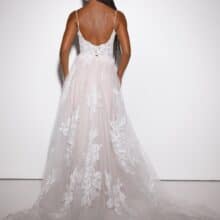 Az A-vonalú menyasszonyi ruha spagettipánttal ideális választás azoknak, akik egyszerre keresnek könnyedséget, eleganciát és részletgazdag kidolgozást. A Presley modell tökéletesen ötvözi a romantikus hangulatot és a modern kifinomultságot, így a menyasszony egész nap magabiztosan és ragyogva viselheti.