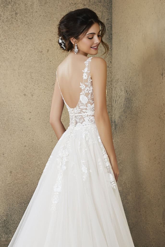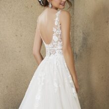 A Morilee Rosa különlegessége a mély dekoltázs és a kecses hátkivágás. Ezek a részletek finom merészséget adnak a ruhának anélkül, hogy elveszítené eleganciáját. Ez az elegáns szalagavató ruha így egyszerre titokzatos és kifinomult.