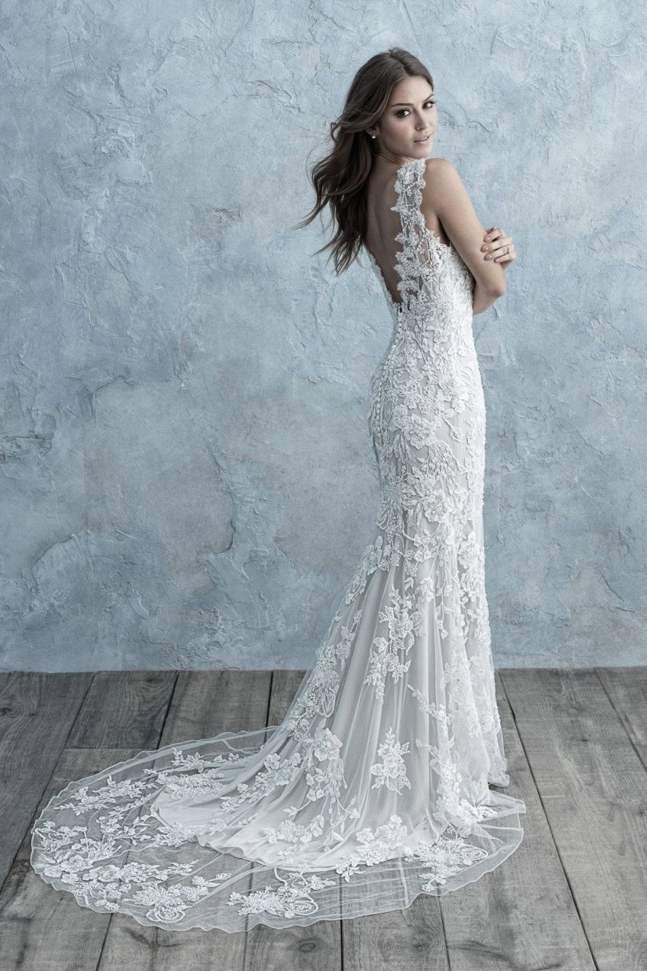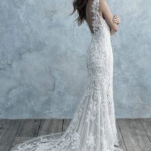 Az Allure Bridals AB 9670 menyasszonyi ruha a romantikus részletek és a modern elegancia harmonikus kombinációja, amely most kiárusítás keretén belül érhető el. A sellő fazon finoman követi az alakot. A csipke és tüll anyagok könnyed esést biztosítanak. A részletek kifinomult megjelenést adnak.