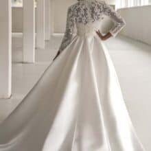 A modell sokoldalú és elegáns stílusú. Ideális választás klasszikus vagy reprezentatív esküvőkhöz. A modell esküvői ruha kiárusításban érhető el, így különleges lehetőség exkluzív designer ruhát választani a nagy napra.