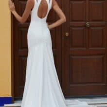 A modell modern és időtlen stílusú. Ideális választás elegáns esküvőkhöz. A modell esküvői ruha kiárusításban érhető el, így különleges lehetőség exkluzív designer ruhát választani a nagy napra.