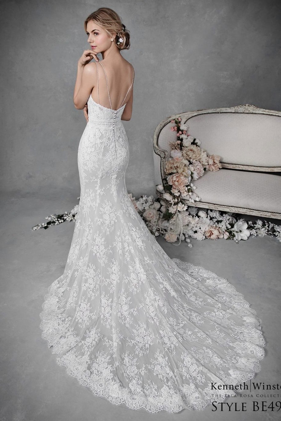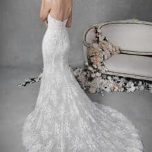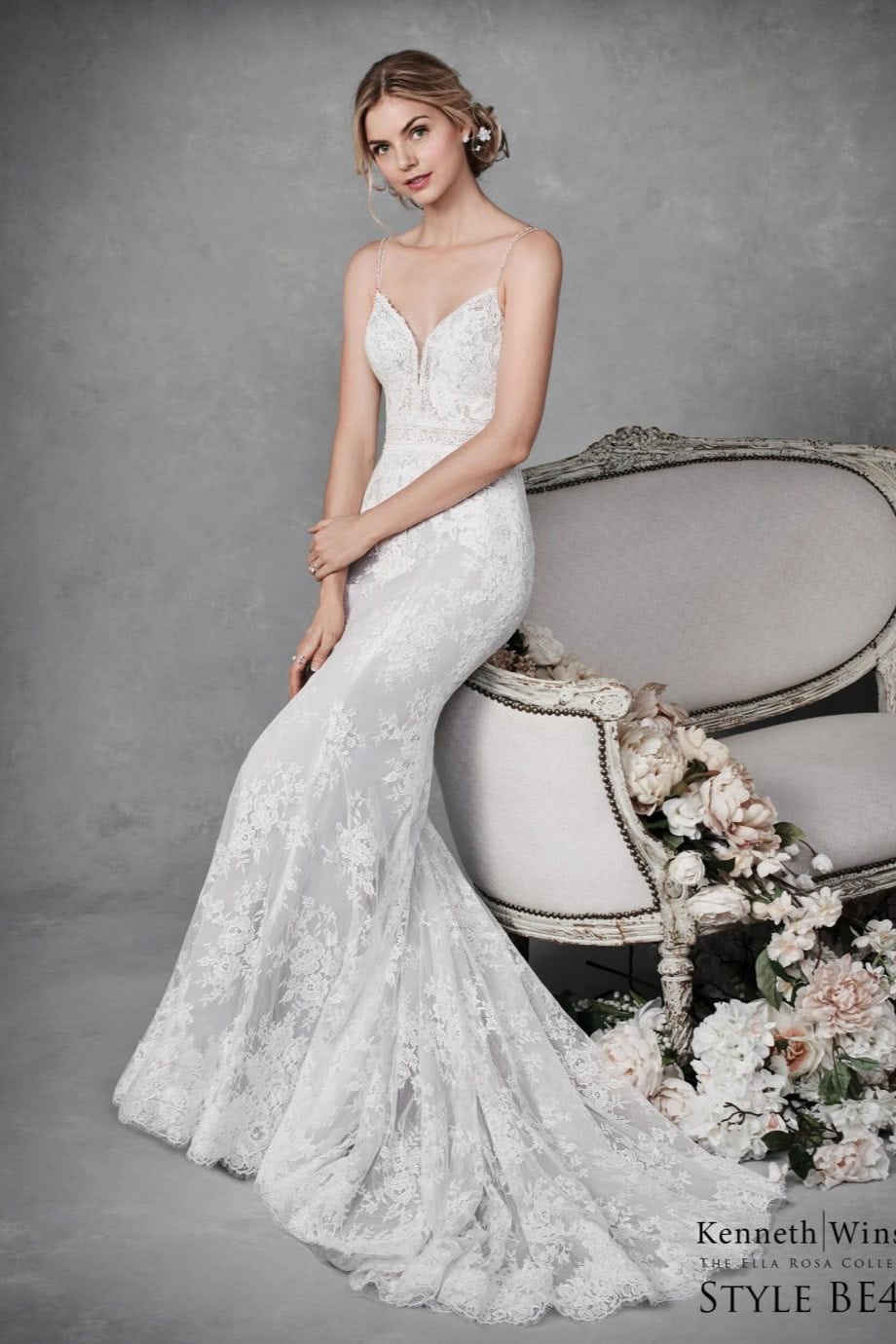 Az Ella Rosa BE495 menyasszonyi ruha romantikus és nőies választás. A sellő fazon finoman követi az alakot. Kiemeli a derekat és a csípőt. A teljes csipkeborítás időtlen eleganciát sugároz.