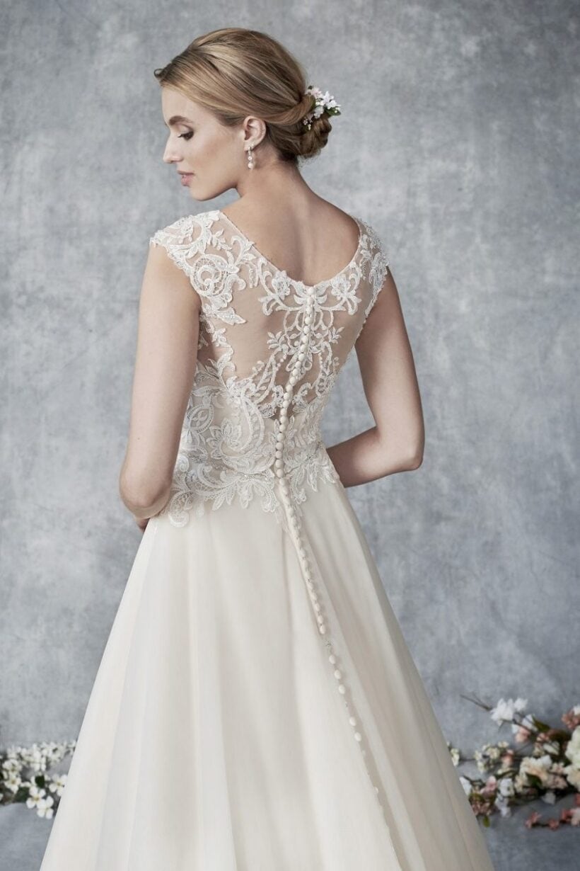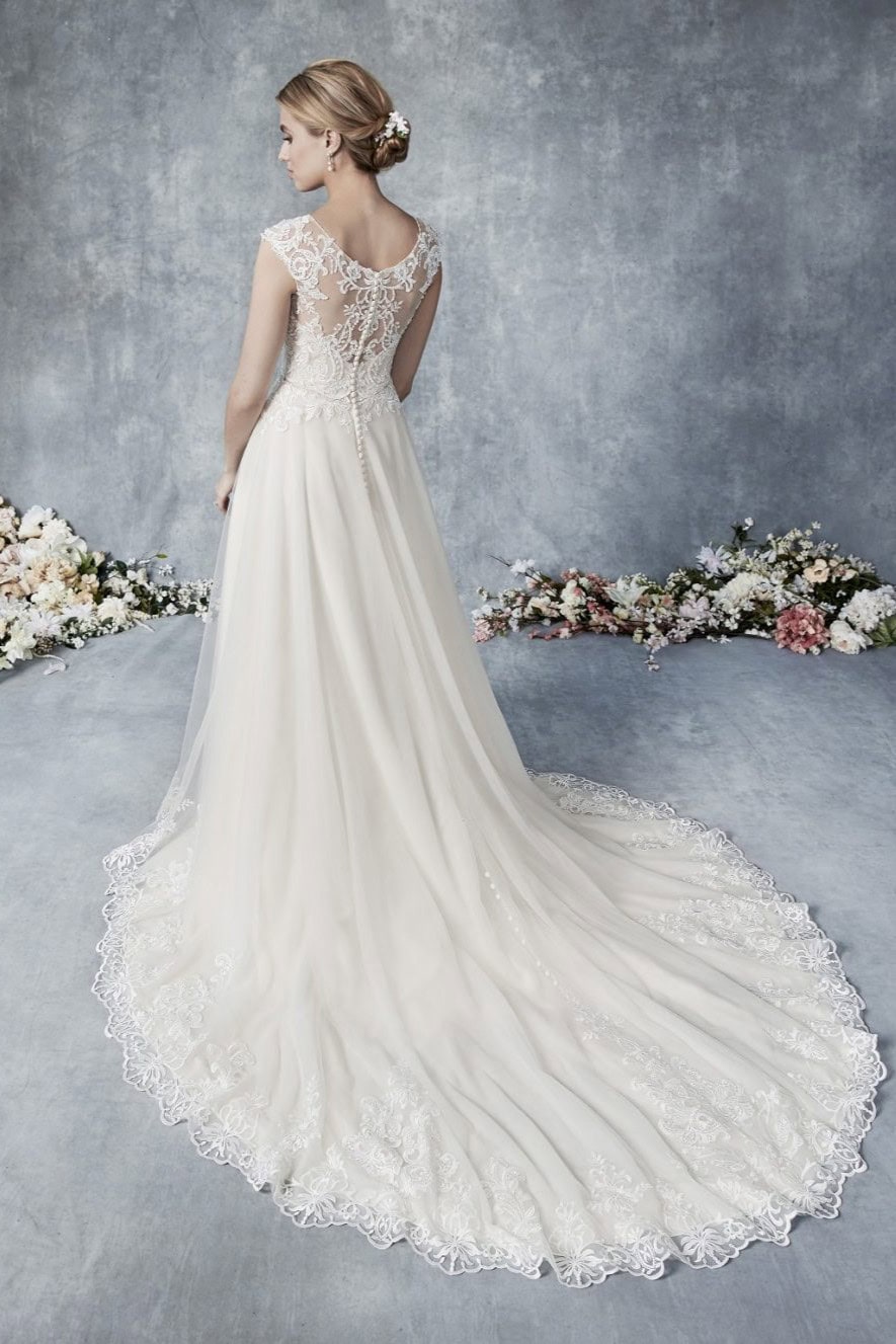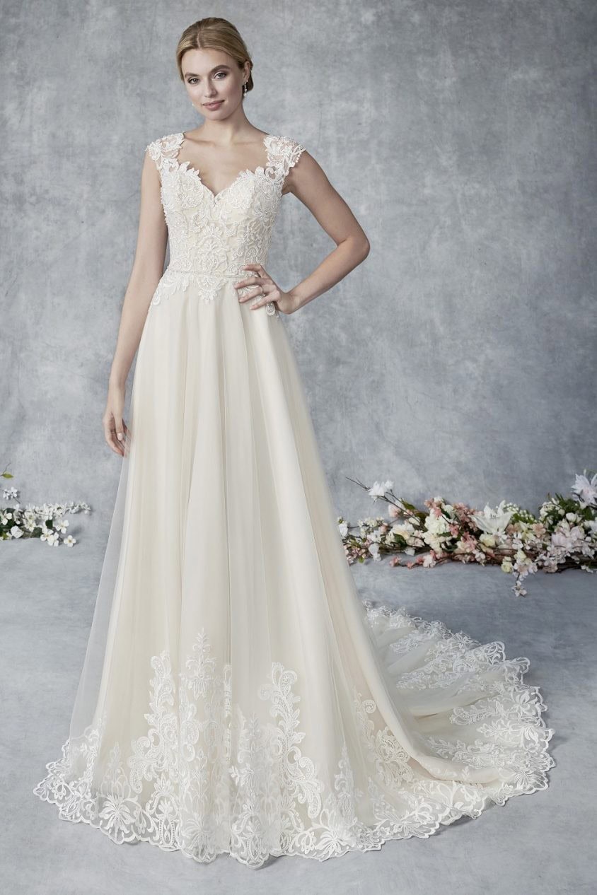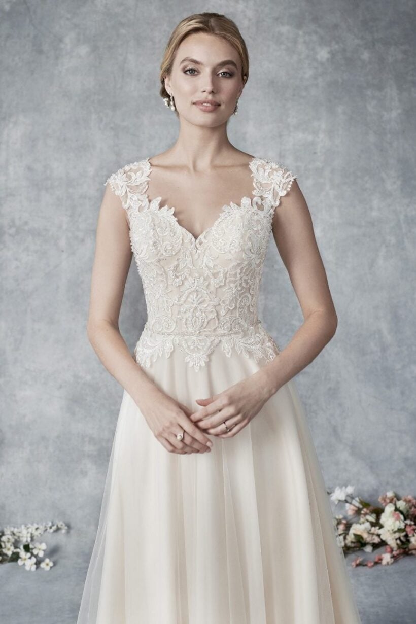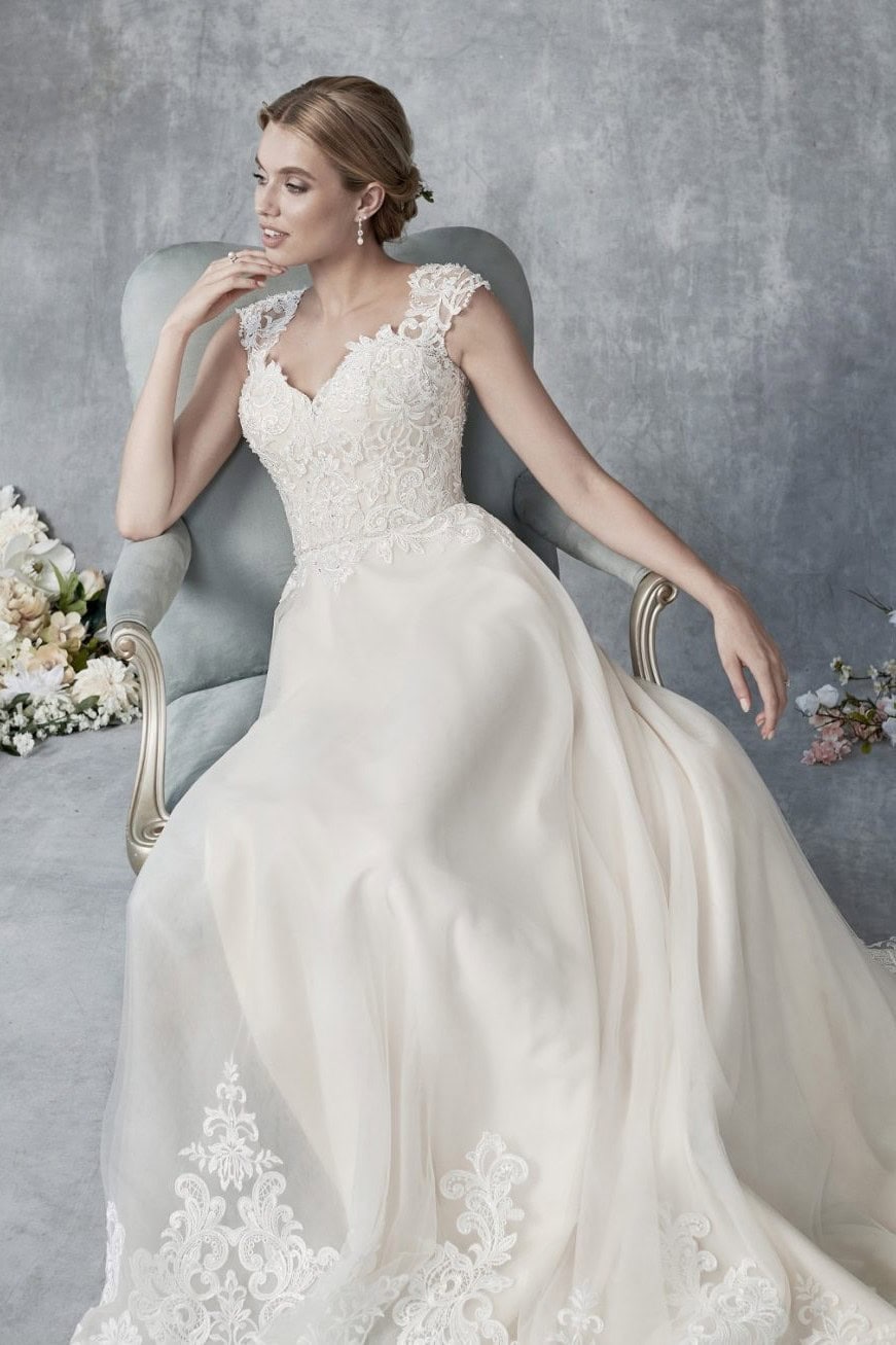 Menyasszonyi ruha kiárusítás: Az Ella Rosa BE539 modell kizárólag menyasszonyi ruha kiárusítás keretében érhető el. Remek lehetőség, ha elegáns ruhát szeretnél kedvezőbb áron.