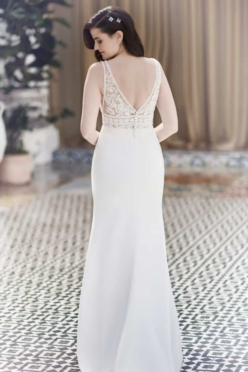Menyasszonyi ruha kiárusítás: Az Ella Rosa GA2405 modell kizárólag menyasszonyi ruha kiárusítás keretében érhető el. Tökéletes lehetőség, ha letisztult, különleges ruhát szeretnél kedvezőbb áron.