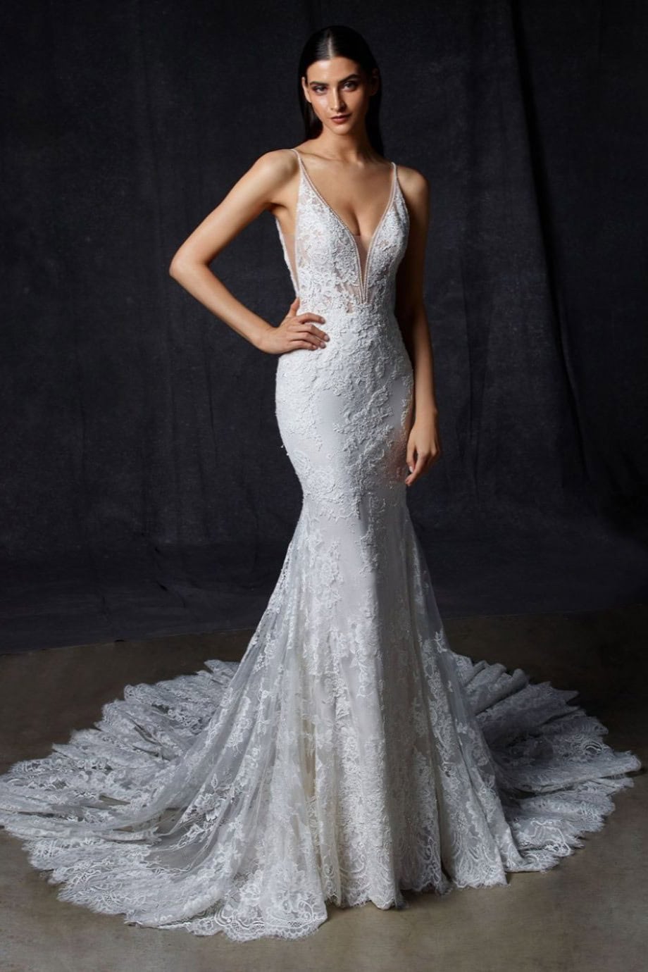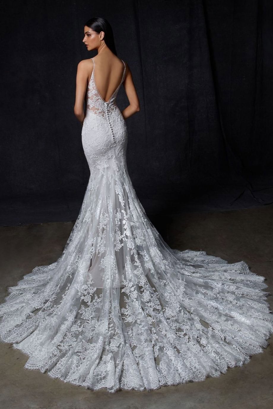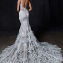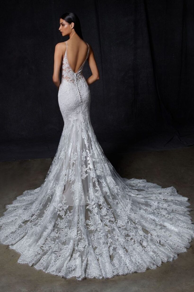 Az Enzoani Onora menyasszonyi ruha nőies és kifinomult megjelenést biztosít. A sellő szabás finoman követi az alakot. Kiemeli a derekat és a csípőt. A francia csipke elegáns textúrát ad. A gyöngyös vállpántok finoman csillognak. A tüll szoknya lágy esést biztosít. A sziluett romantikus és látványos.