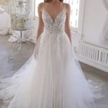Az Enzoani „Omara” egy igazi modern tündérmese megtestesítője: ez az A-vonalú esküvői ruha tüllből, finoman rétegzett organzával és csillogó részletekkel olyan menyasszonyoknak készült, akik a romantikus megjelenést egy kis modern érzékiséggel szeretnék ötvözni.