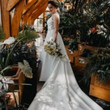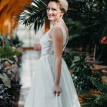 Idén agusztusban volt az esküvőnk, amelyre az Eklektika szalonból béreltem a ruhát. Küldök pár képet, amiken különösen hangsúlyt kap a ruha hosszú, és gyönyörű uszálya. Remélem a legközelebbi menyasszony is olyan jól fogja érezni magát benne, mint én.
