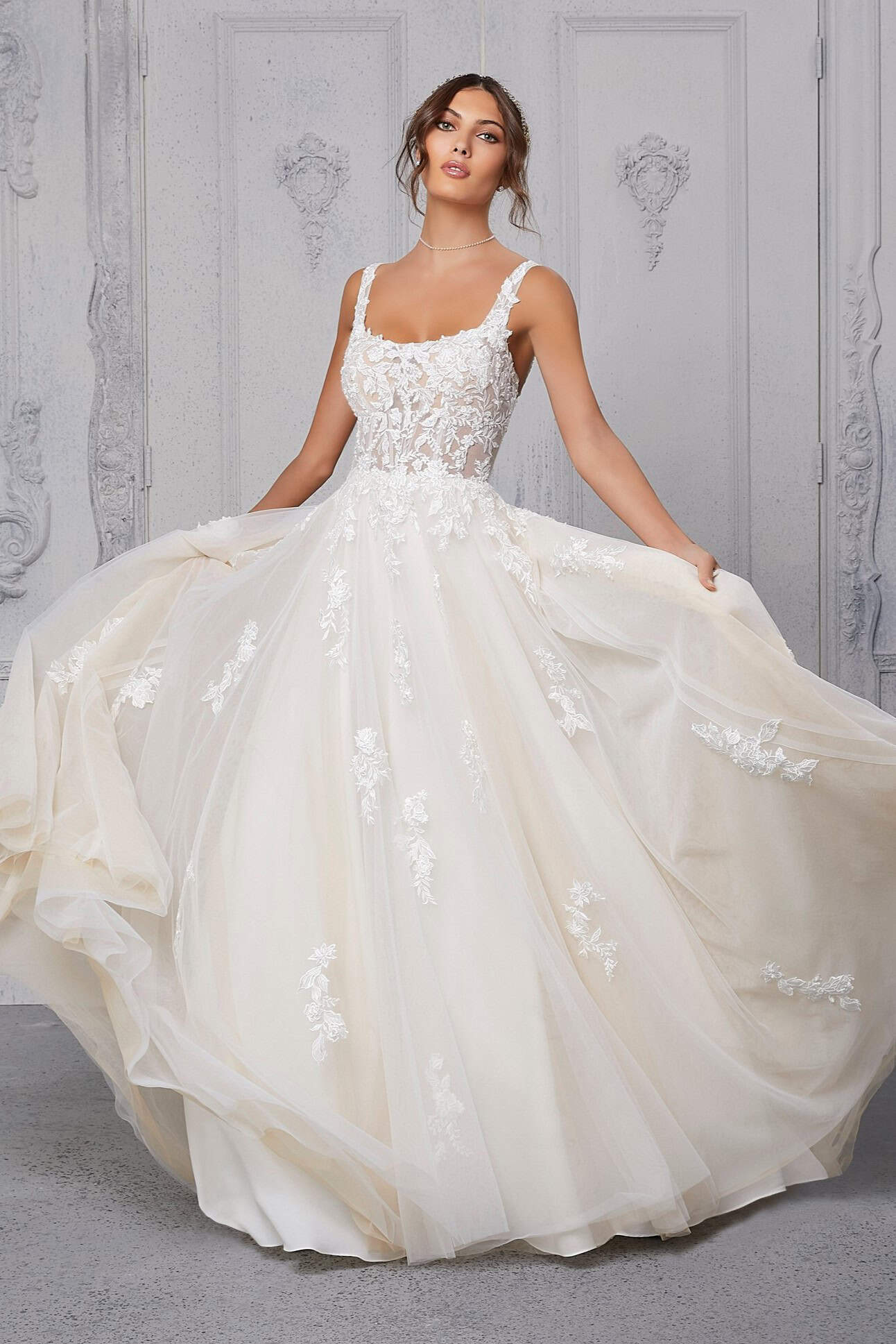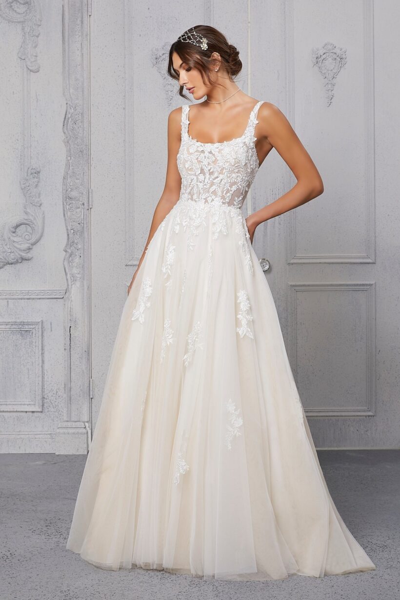 Ez a modell azoknak készült, akik szeretnék megélni a hercegnős hangulatot, miközben friss és kifinomult megjelenésre vágynak. A ruha mozgás közben válik igazán különlegessé, amikor minden lépésnél életre kel.