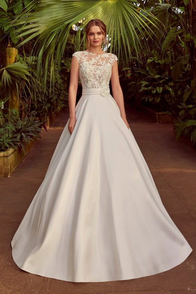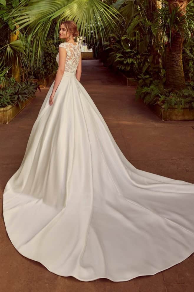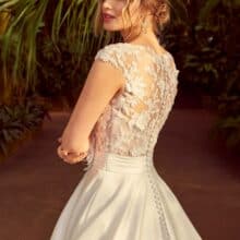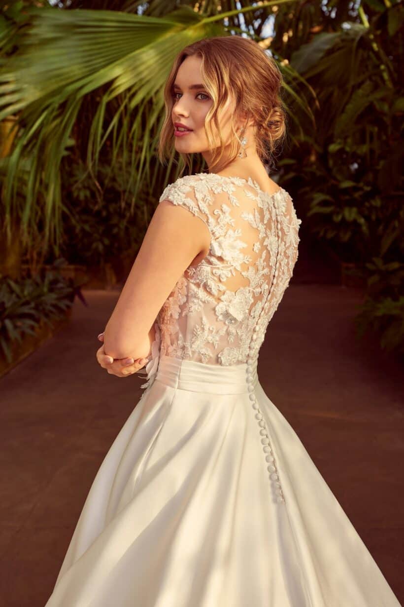 A Karyn modell ideális választás templomi esküvőkhöz és elegáns helyszínekhez egyaránt. Ez a klasszikus szatén esküvői ruha azoknak a menyasszonyoknak szól, akik értékelik a hagyományos szépséget, de fontos számukra a minőség és az időtállóság. Egy olyan ruha, amelyben a menyasszony megjelenése valóban emlékezetes marad.