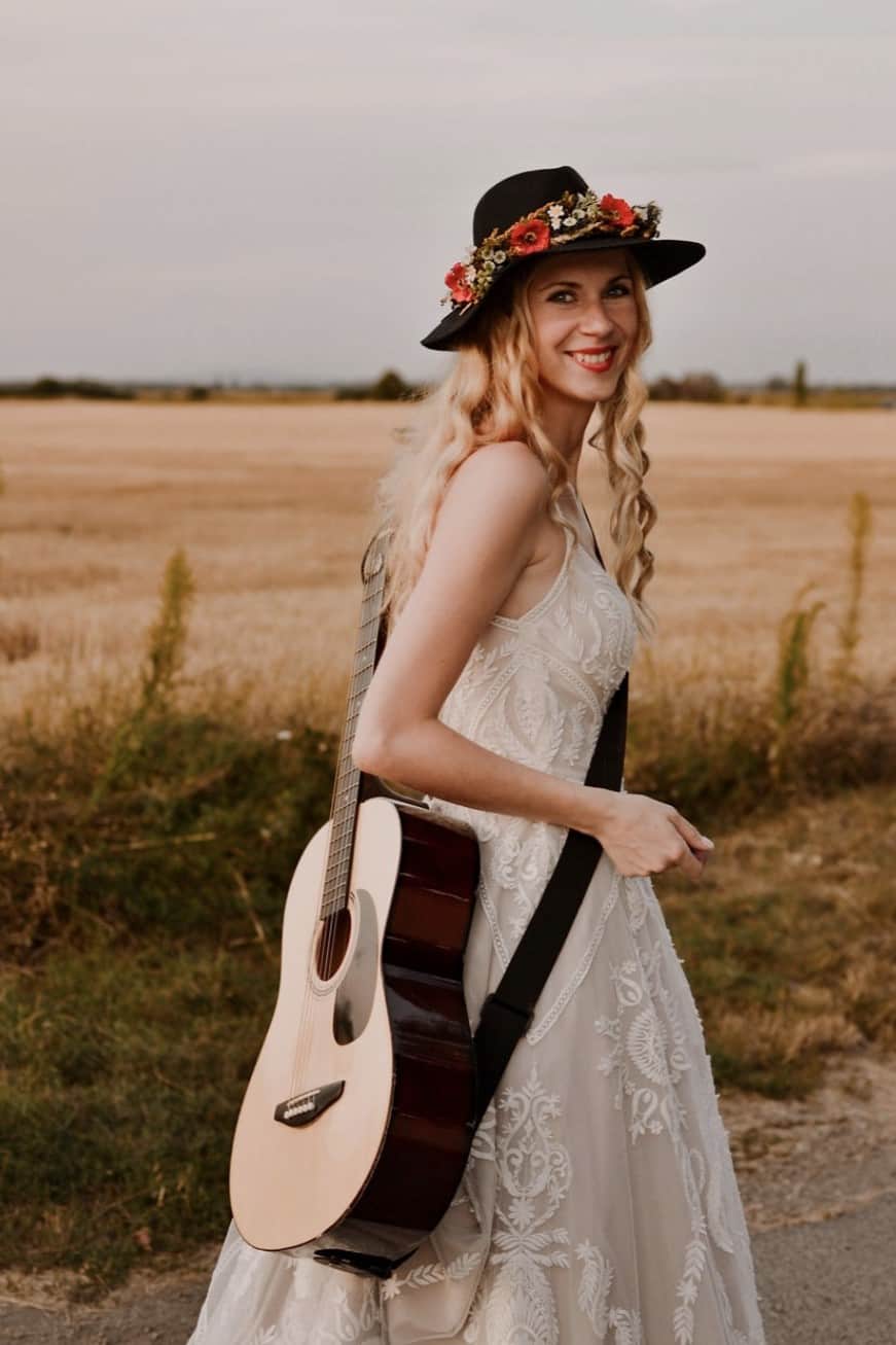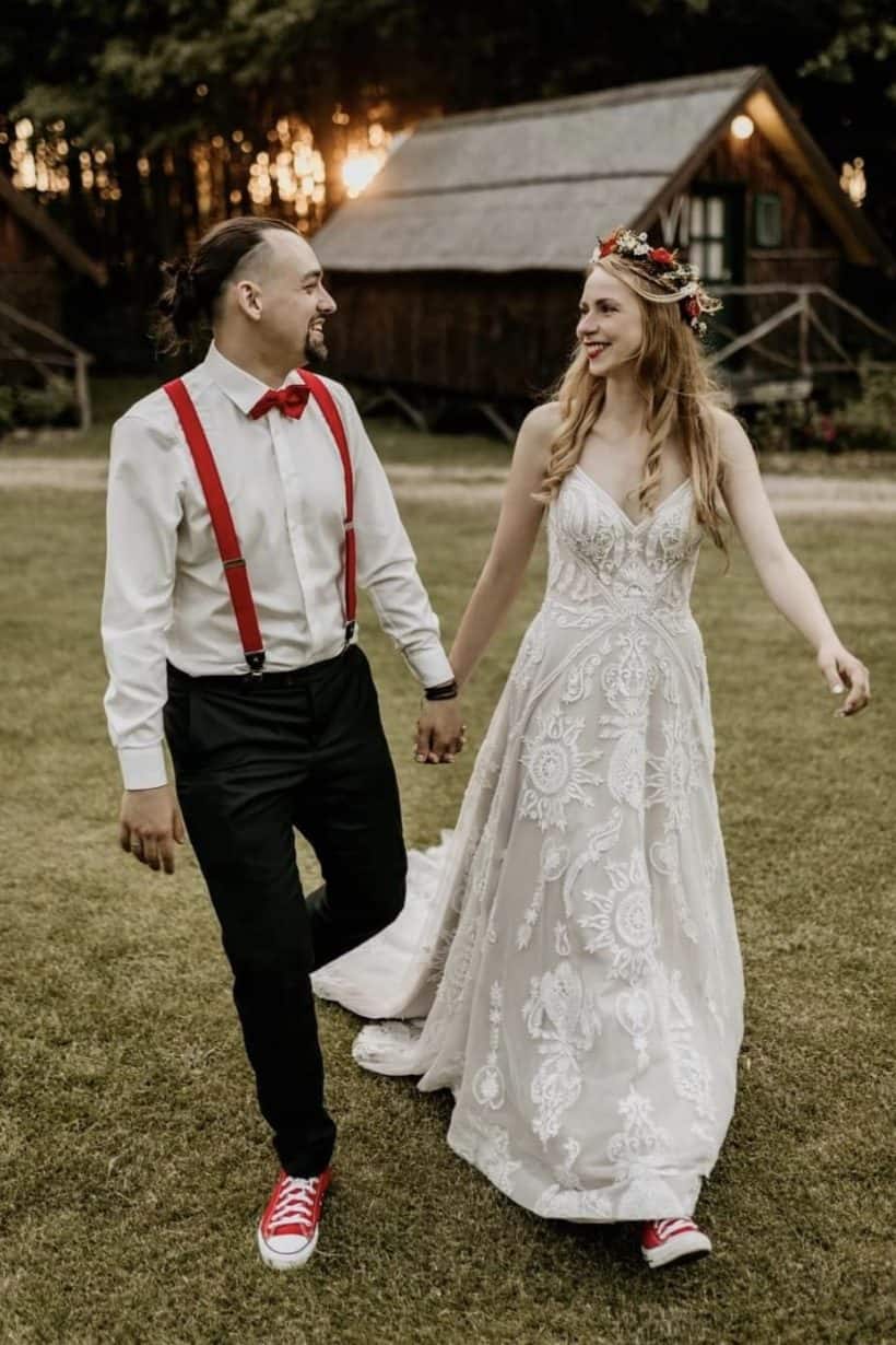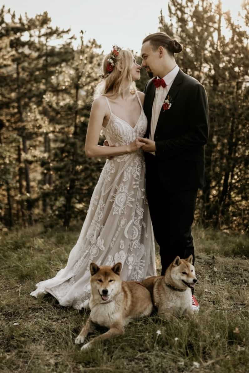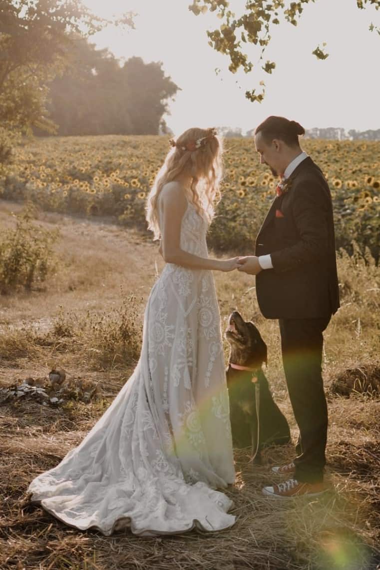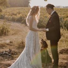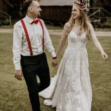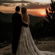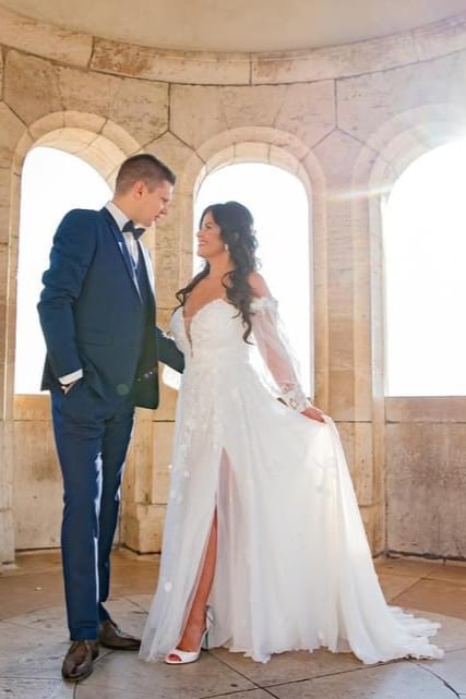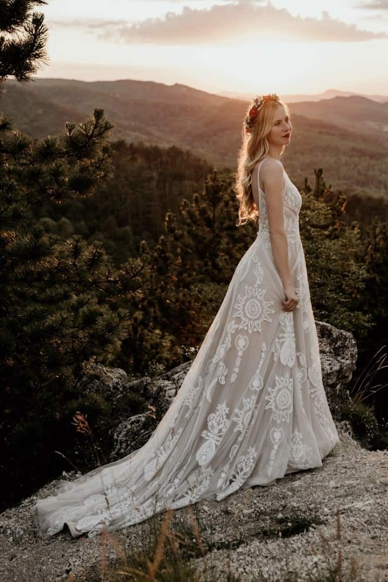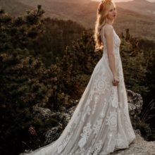 A menyasszony a Evie Young kollekciónk „Raven” modelljét viselte.