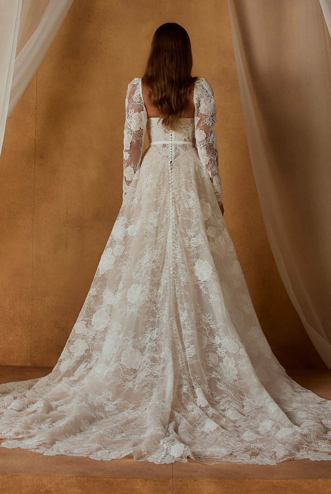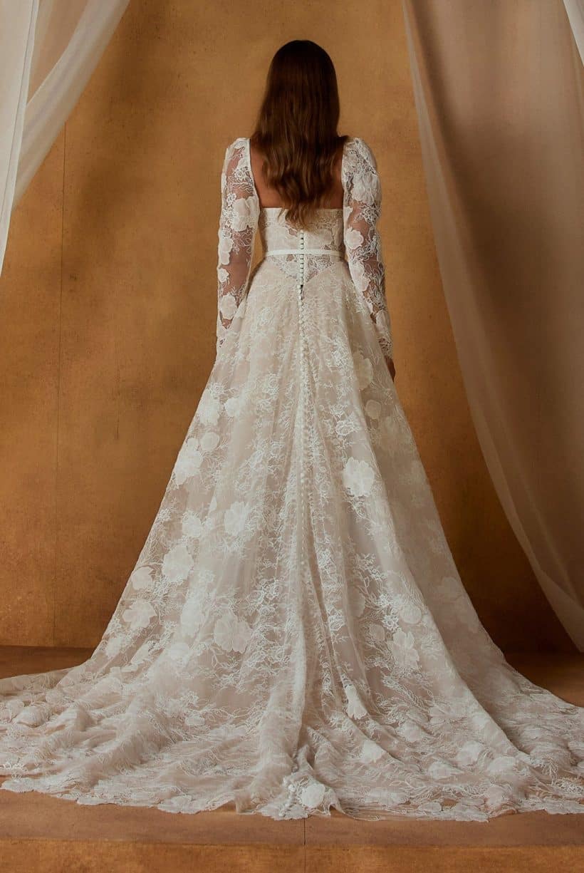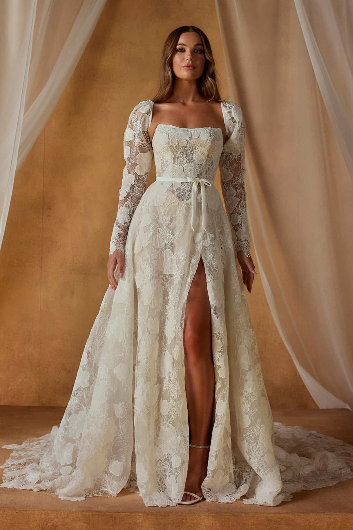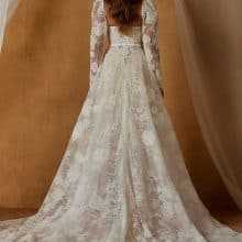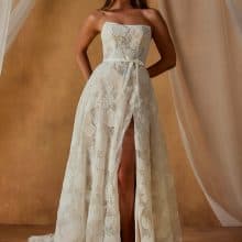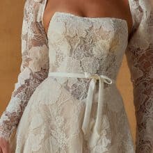 A modell különlegessége, hogy menyasszonyi ruha levehető ujjal, így többféle stílusban viselhető. A hozzá tartozó csipke ujjak extra drámaiságot adnak a megjelenéshez, és lehetővé teszik, hogy a menyasszony a ceremónia és az ünneplés során is változtasson az összhatáson.