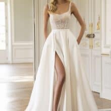 Az Étoile EVIE azoknak a menyasszonyoknak készült, akik szeretik az elegáns, modern, mégis romantikus stílust. Légy lenyűgöző és ragyogj a nagy napon ebben a különleges ruhában!