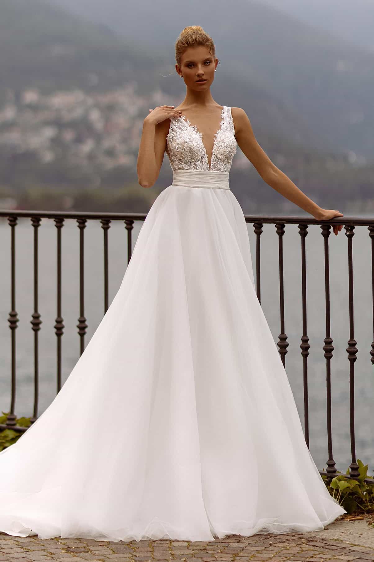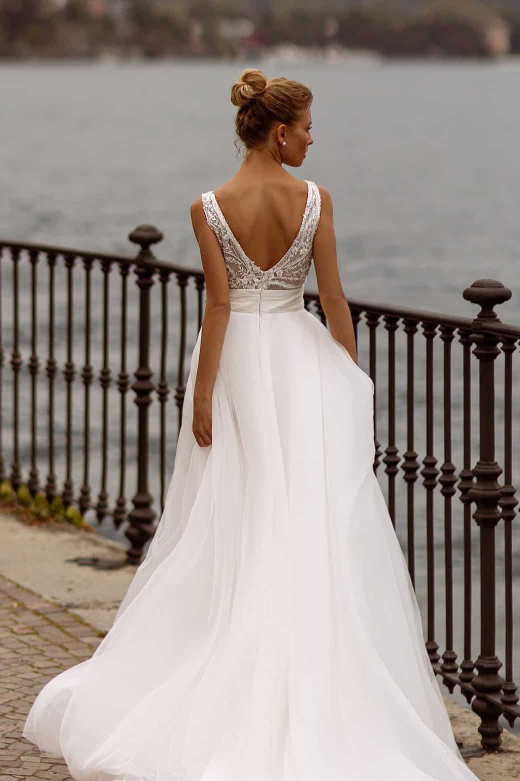Az A-vonalú tüllszoknya könnyed mozgást biztosít. Forgás közben látványosan lebeg, így tökéletes választás keringőhöz vagy nyitótánchoz is.