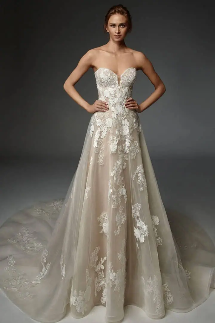 Enzoani Hyacinthe – Pántnélküli A-vonalú esküvői ruha virágmotívummal
