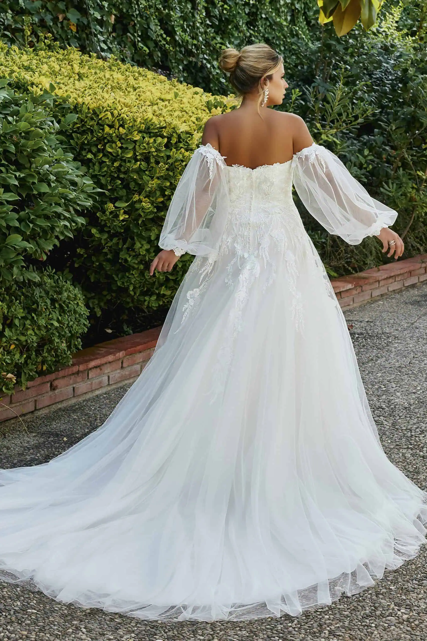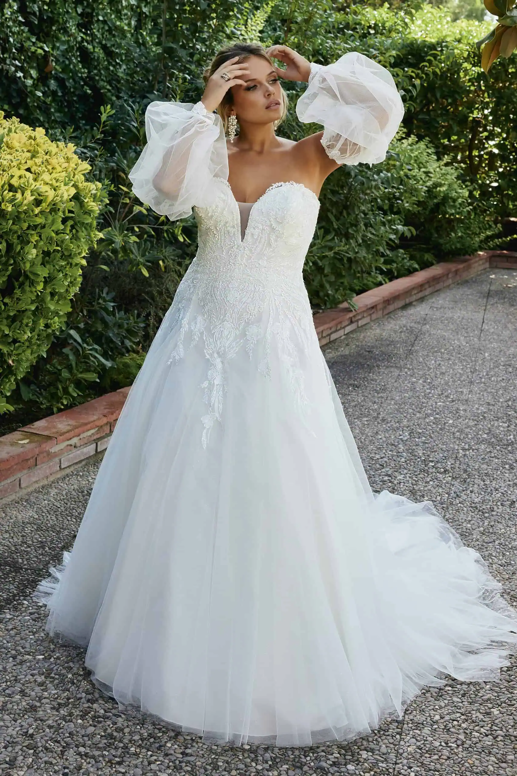 Ez a modell a klasszikus elegancia és a kortárs design tökéletes találkozása – egy plus size menyasszonyi ruha puffos ujjal, amelyben minden menyasszony magabiztosnak, gyönyörűnek és igazán különlegesnek érezheti magát a nagy napon.