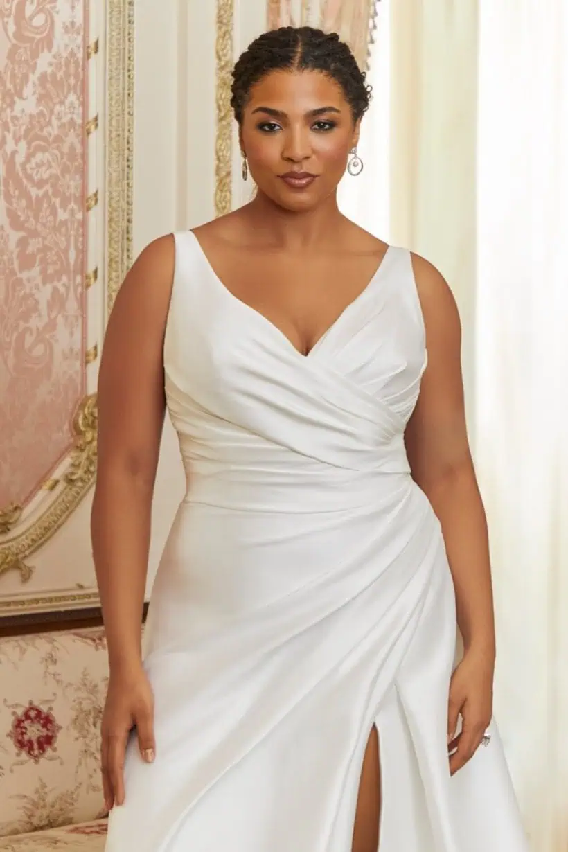 Morilee – Tia A-vonalú plus size menyasszonyi ruha szaténból