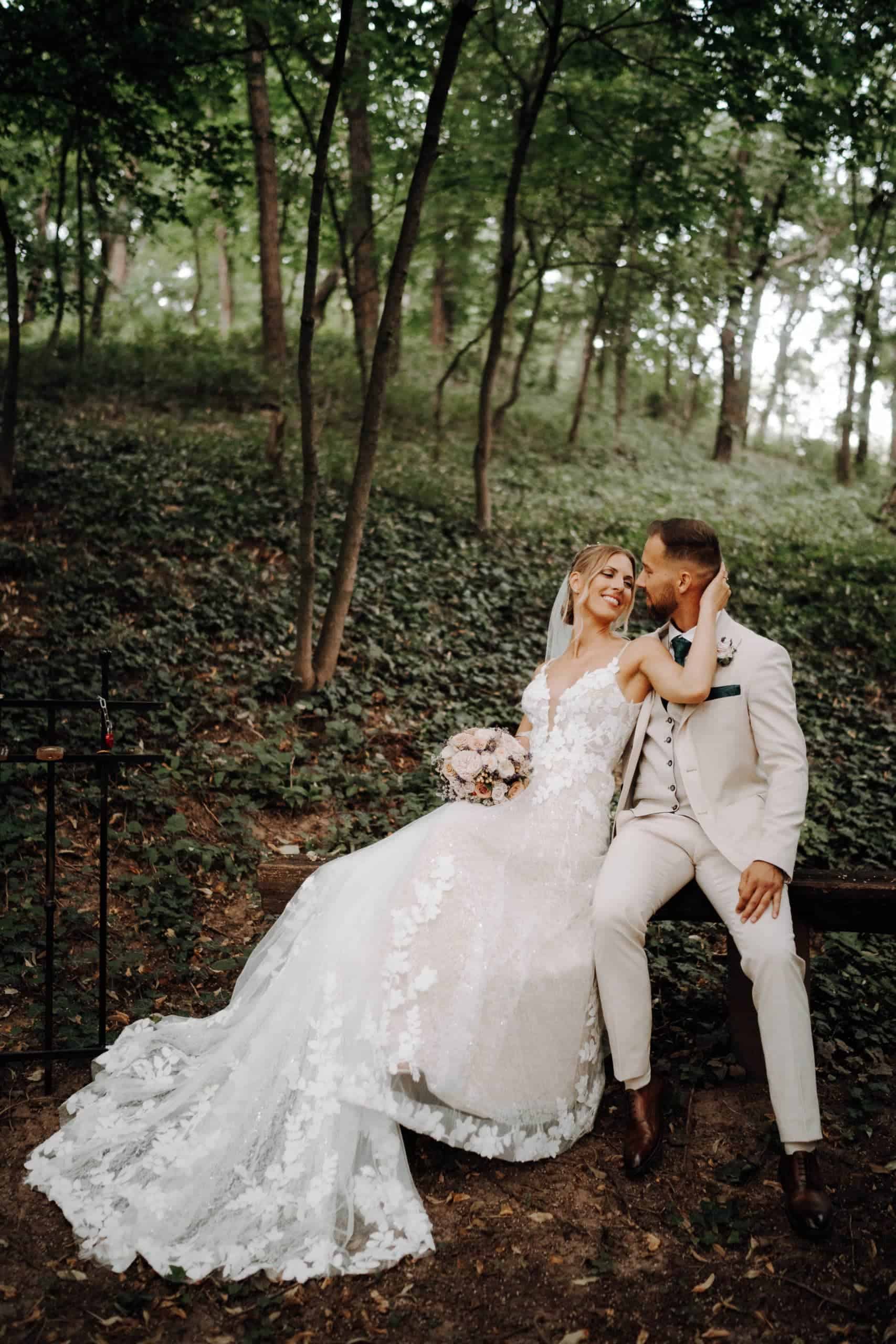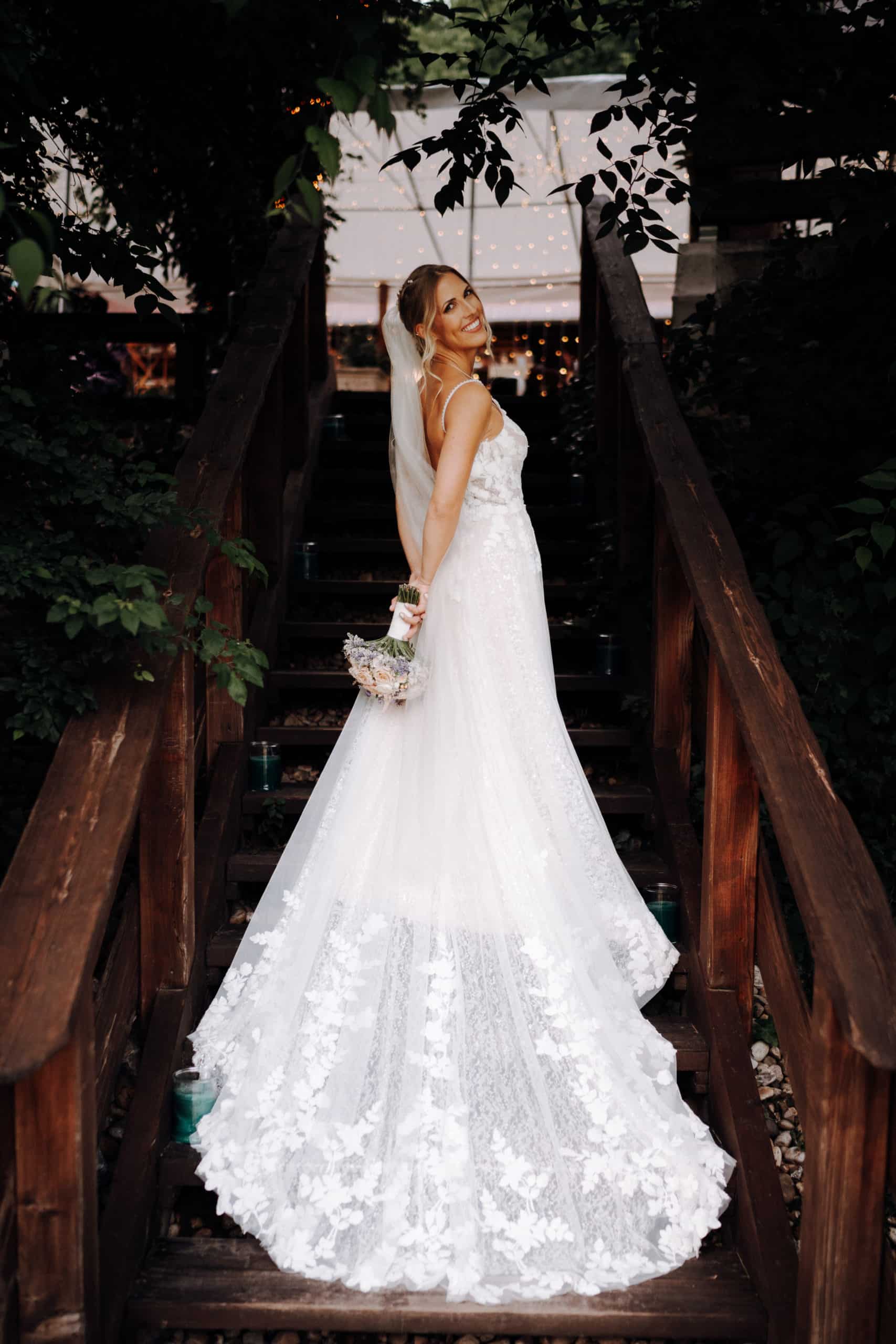 A menyasszony a Madi Lane kollekciónk „Jenica” modelljét viselte.