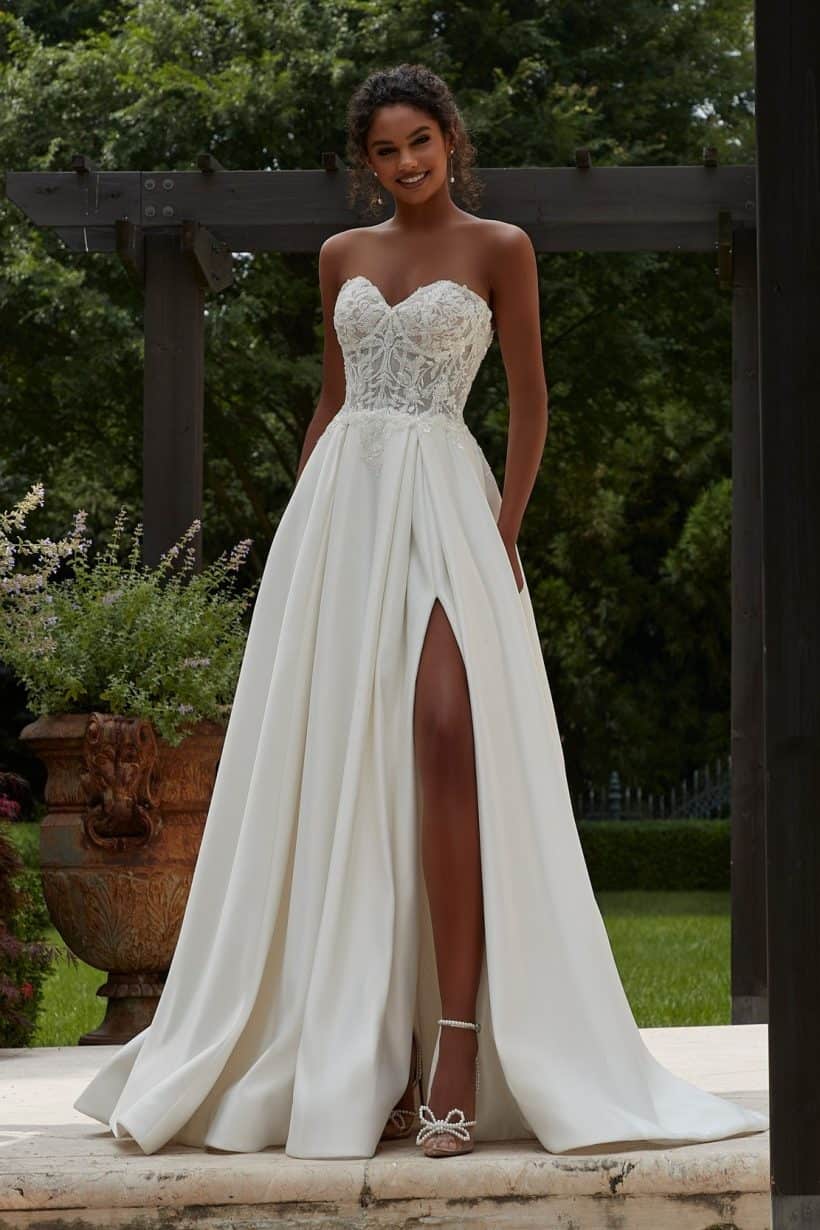 Szatén A vonal menyasszonyi ruha zsebbel – Morilee Patricia