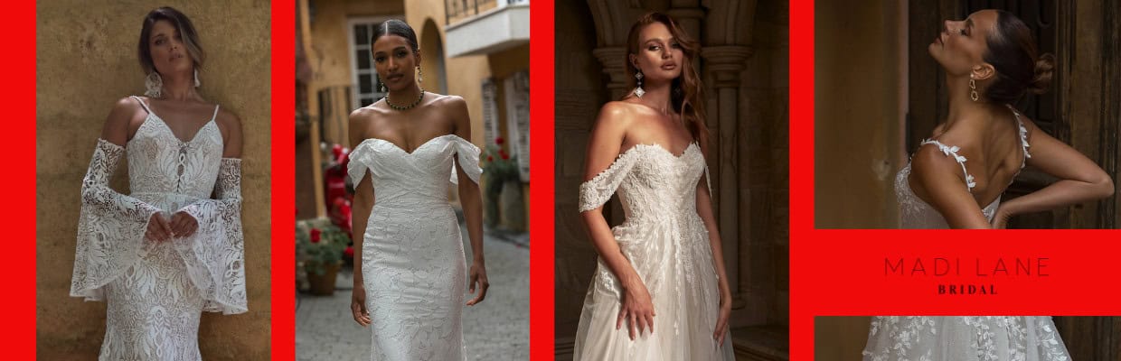 A menyasszony a Madi Lane kollekciónk „Jenica” modelljét viselte.